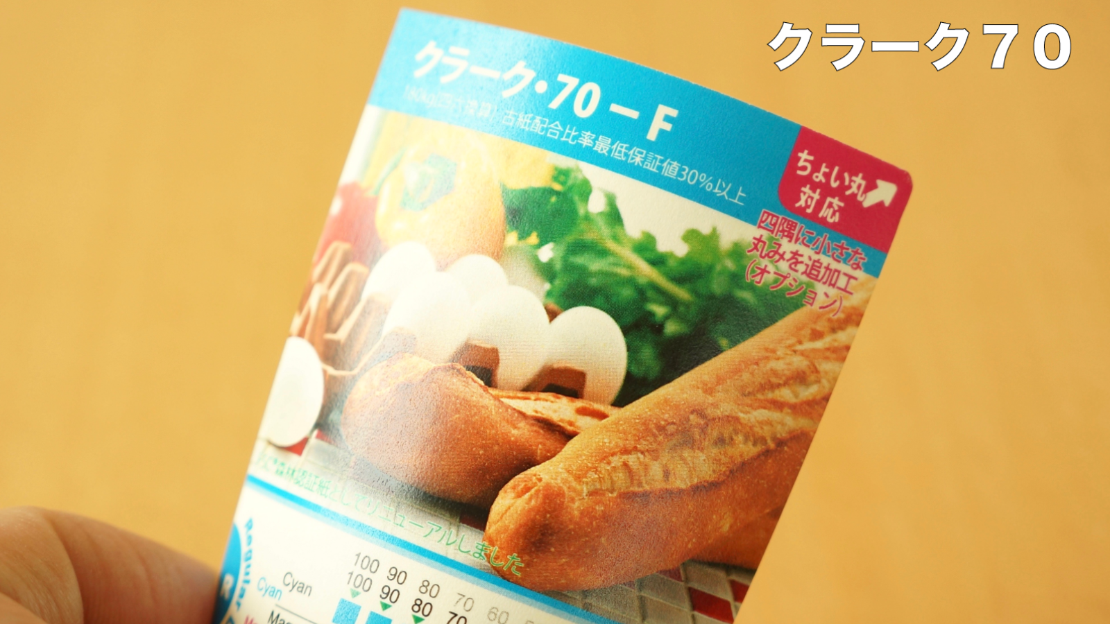 クラーク70 レギュラーライン 白色度70%の再生高級印刷用紙です。クラークケントより黄色ががっています。※紙の目がありますので裁ち落としのデザインはお勧めいたしません。(バリが出る場合があります) |
